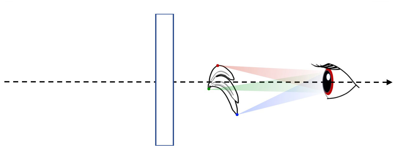 Fig. 1. Vision directe : les faisceaux de tous les points source visibles de l'objet interceptent la pupille de mon oeil. #### Image optique * L'objet est vu sous un **angle de vue**, dont la direction principale nommée **ligne de visée** définit (_lorsque orienté positivement dans le sens de la lumière incidente_) l'**axe optique** du système imageur. * Le *faisceau lumineux issu et divergent de chaque point source* de l'objet et qui intercepte le système imageur, après interaction *converge vers un nouveau point* de l'espace appelé **point image réel**, ou *diverge à partir d'un nouveau point* de l'espace appelé **point image virtuel**. * **Image** : *ensemble de tous les points réels et virtuels*. * **cohérence de forme** entre objet initial et son image, mais des *distorsions de forme peuvent apparaître*. ![](vision-image.jpg)