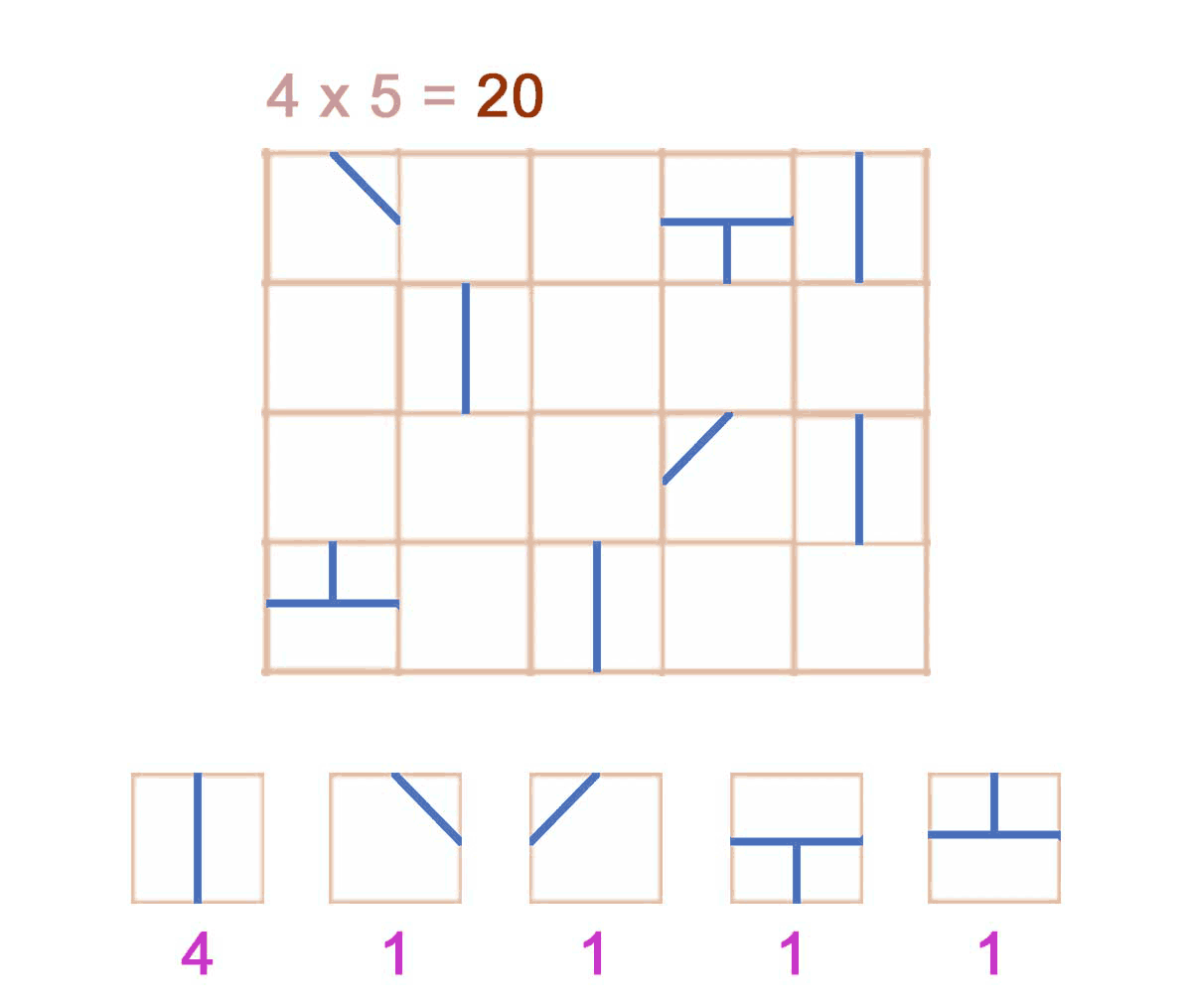 $`\quad = \overset{\text{case 1}}{1} + \overset{\text{case 2}}{2} + \overset{\text{case 3}}{(2\times 2)}`$