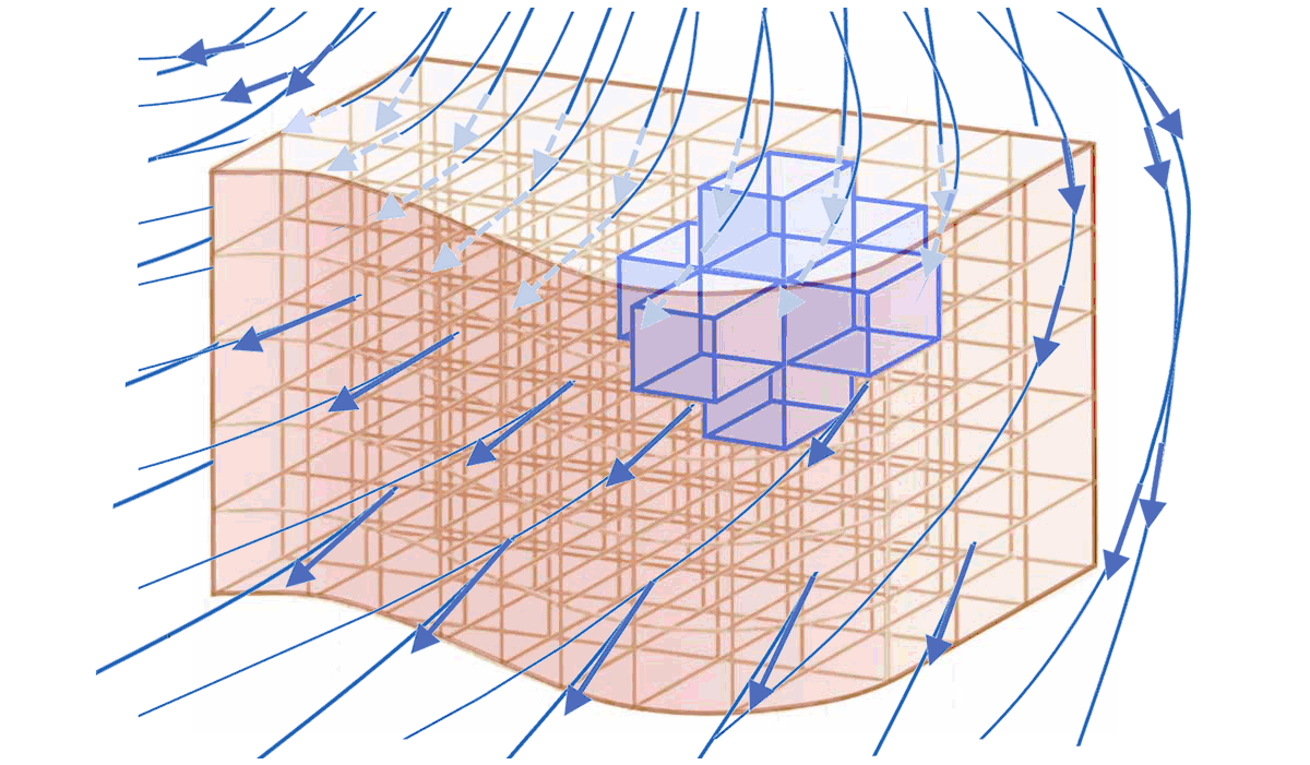 * Le champ vectoriel $`\overrightarrow{X}`$ produit un **flux élémentaire $`d\Phi_X`$** à travers chaque *$`d\tau`$* délimité par un élement de surface fermée $`dS`$.