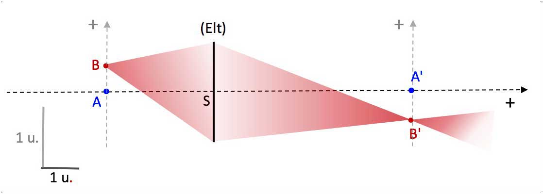 - (Elt) : representation of the thin imager interface, contains S : incident rays (or their extension) change of direction when passing through (Elt).