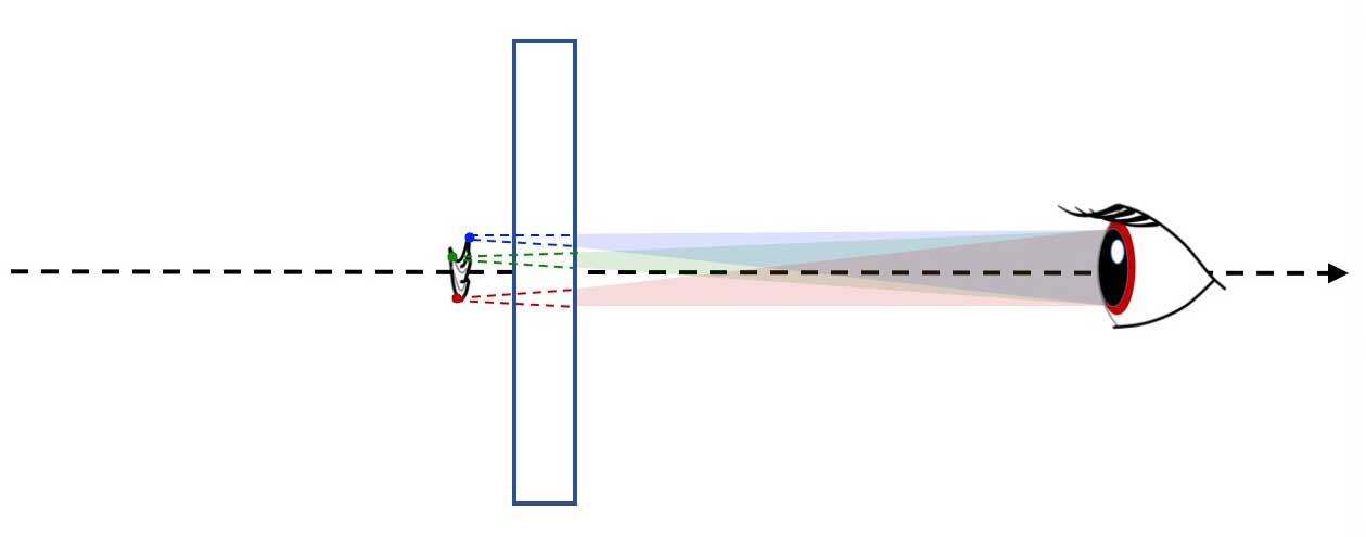 - naked eyes = direct vision of an object : pencils from all visible point sources of the object intercept the pupil of the eye.
