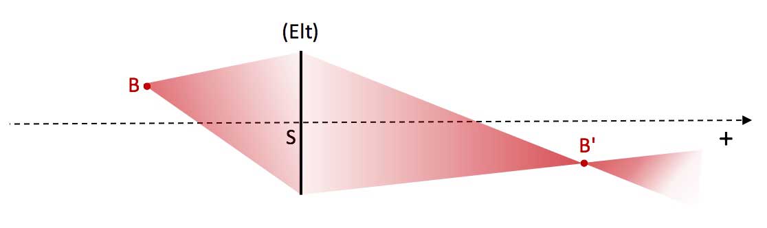 • (Elt) : representation of the thin imager interface, contains S : incident rays (or their extension) change of direction when passing through (Elt).