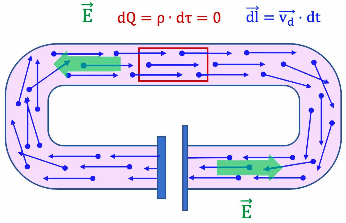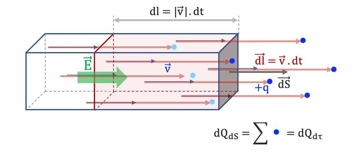 dQ_{dS}$ qui traverse dans le temps $dt$ est donc la charge totale $dQ_{d\tau}$ des porteurs de charge libres contenus dans le volume $d\tau$.