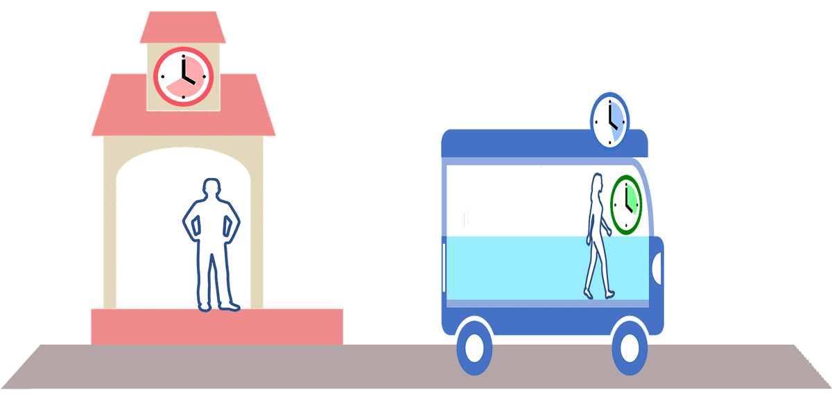 et ici idem avec contractions bus, femme, avec passage du temps différent. pour le point de vue du l'homme, de la femme du train?
