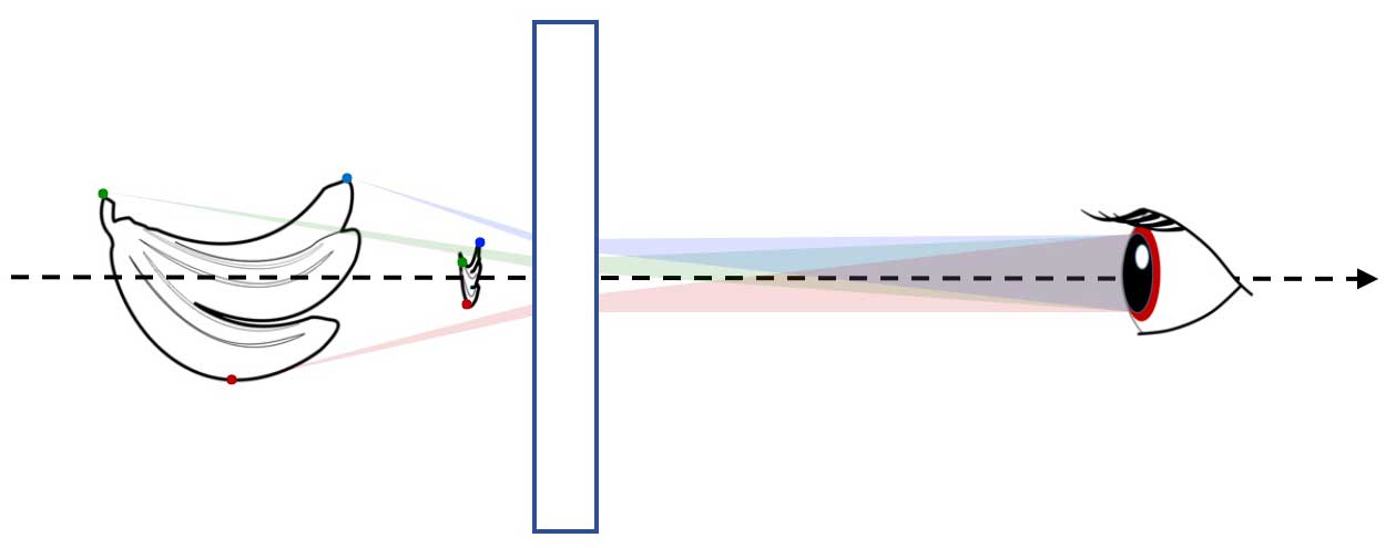- naked eyes = direct vision of an object : pencils from all visible point sources of the object intercept the pupil of the eye.