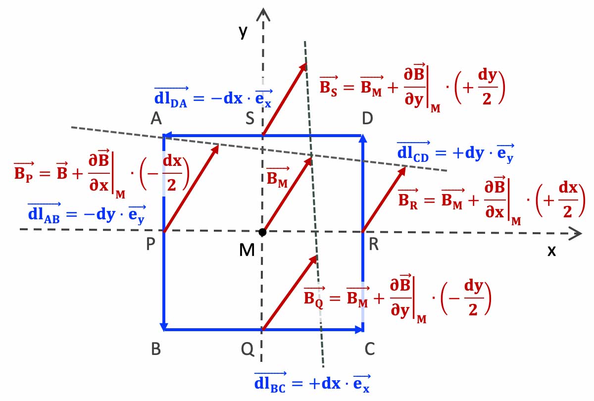 \Longrightarrow$ idée 1 : faire tendre le contour d'Ampère vers un contour mésoscopique plan autour de chaque point de résolution de l'espace, la circulation ainsi calculée sera une propriété locale du champ. -