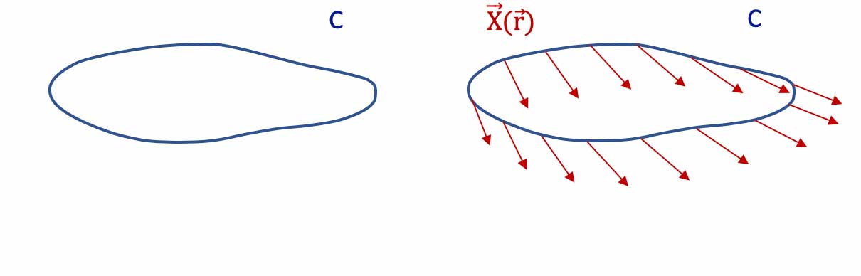 \overrightarrow{X}(\overrightarrow{r})$, et un contour fermé C dans l'espace.
