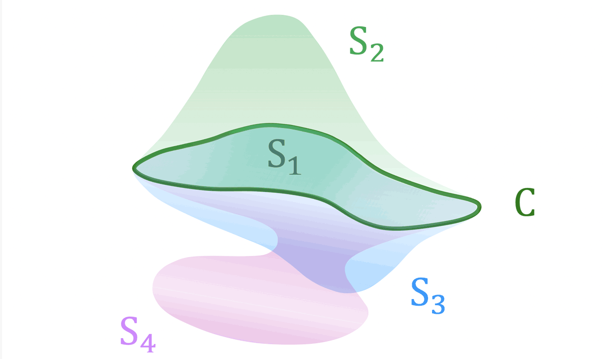 Il existe une infinité de surfaces ouvertes qui s'appuient sur un même contour quelconque.