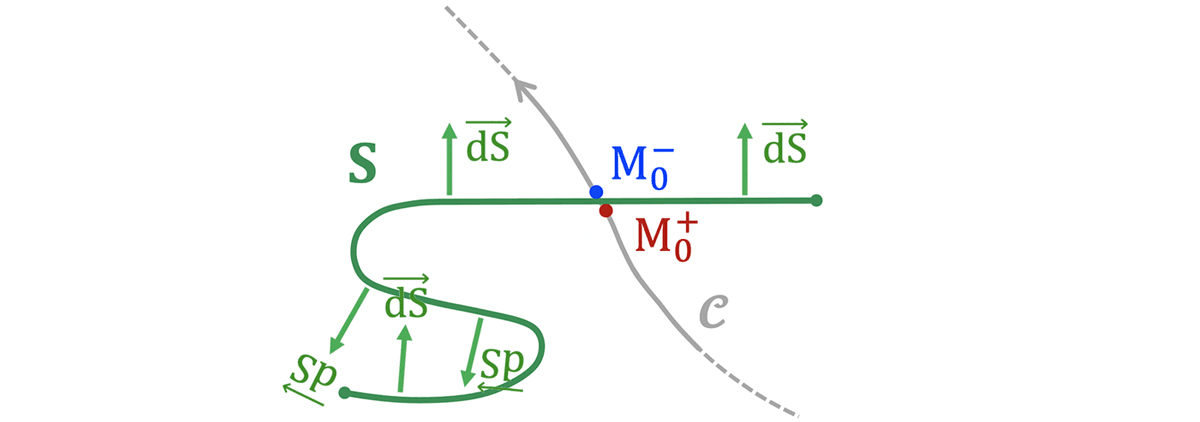 - Soit une surface ouverte S quelconque qui s'appuie sur le contour C.