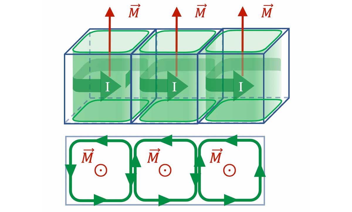 Un petit volume de matière aimanté présente les mêmes caractéristiques qu'un moment magnétique associé à une boucle de courant.